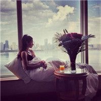 唯美小清新女生侧脸抱花头像